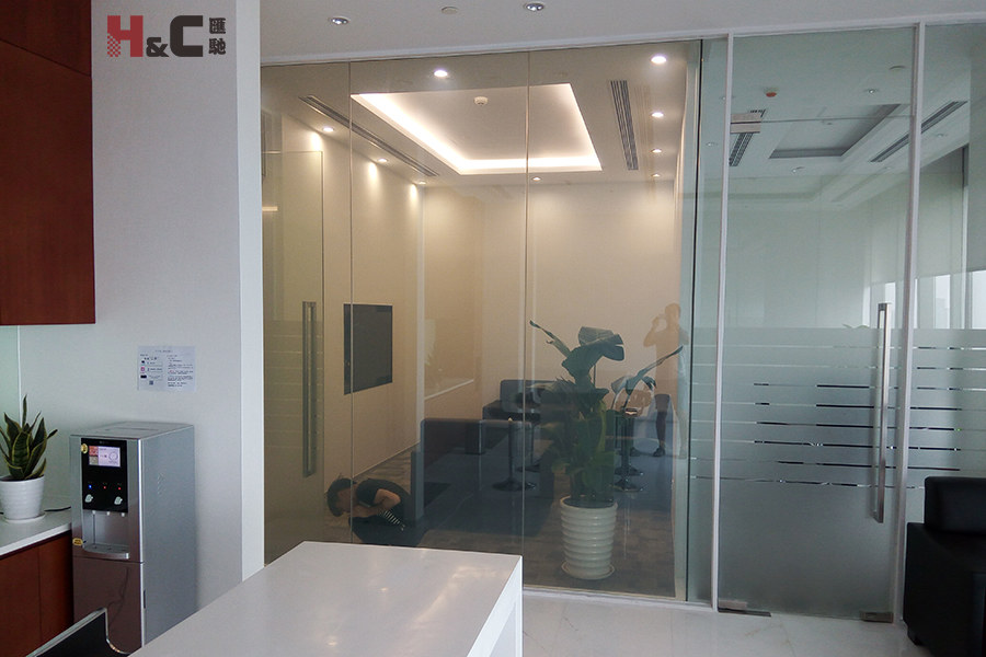 創(chuàng)興銀行的辦公室隔斷應(yīng)用了我公司的智能調(diào)光玻璃。